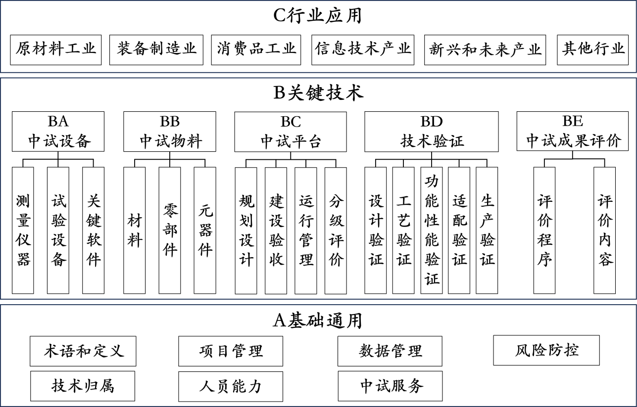 圖1 制造業(yè)中試標準體系結(jié)構(gòu)圖