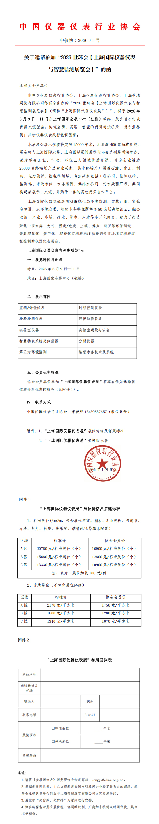 關于邀請參加“2026世環會【上海國際儀器儀表與智慧監測展覽會】”的函