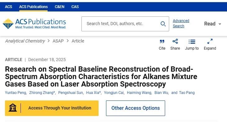 近日,中國科學(xué)院合肥物質(zhì)科學(xué)研究院安徽光學(xué)精密機(jī)械研究所張志榮研究員團(tuán)隊(duì)在寬譜吸收氣體基線重建技術(shù)研究方面取得重要進(jìn)展。相關(guān)研究成果以《基于激光吸收光譜的烷烴混合氣體寬譜吸收特性基線重建研究》為題,發(fā)表在國際學(xué)術(shù)期刊《分析化學(xué)》(Analytical Chemistry)上。