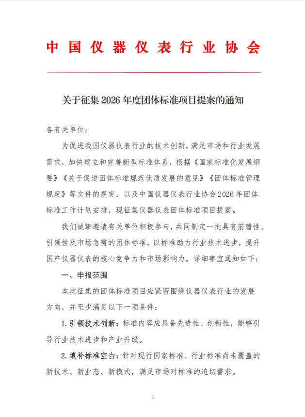 關(guān)于征集2026年度團(tuán)體標(biāo)準(zhǔn)項(xiàng)目提案的通知