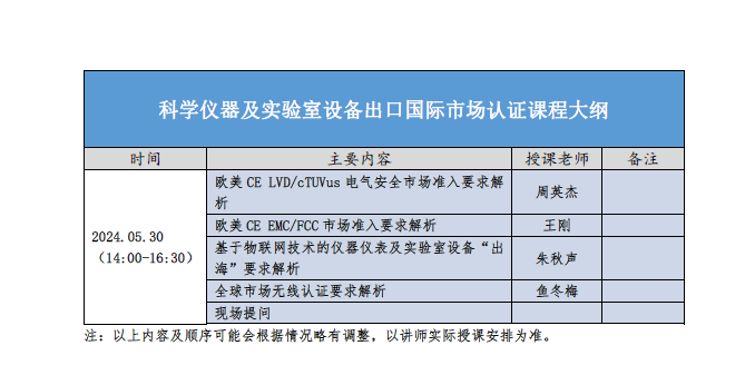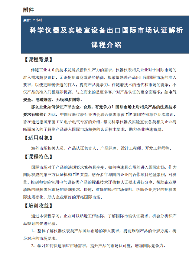 附件:科學(xué)儀器及實驗室設(shè)備出口國際市場認證解析課程介紹