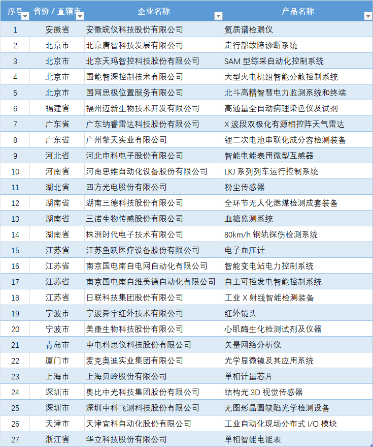 在第九批制造業單項冠軍企業公示名單中,有多家儀器儀表行業企業的單項冠軍產品上榜。