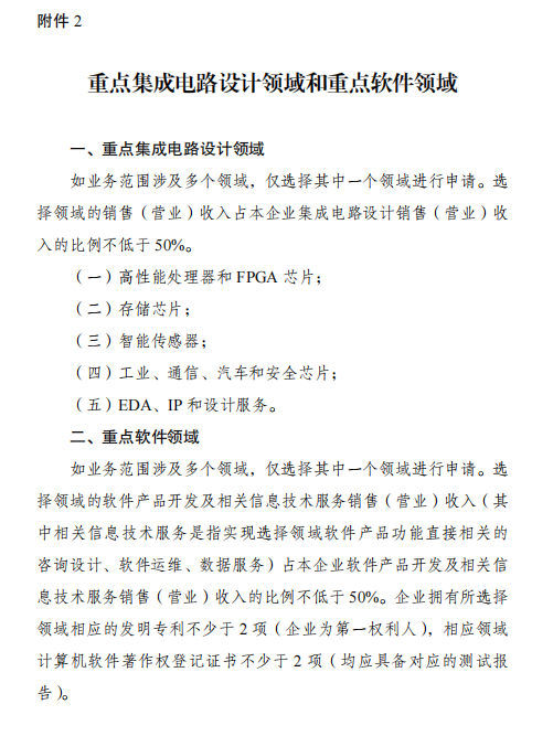 2. 重點集成電路設計領域和重點軟件領域