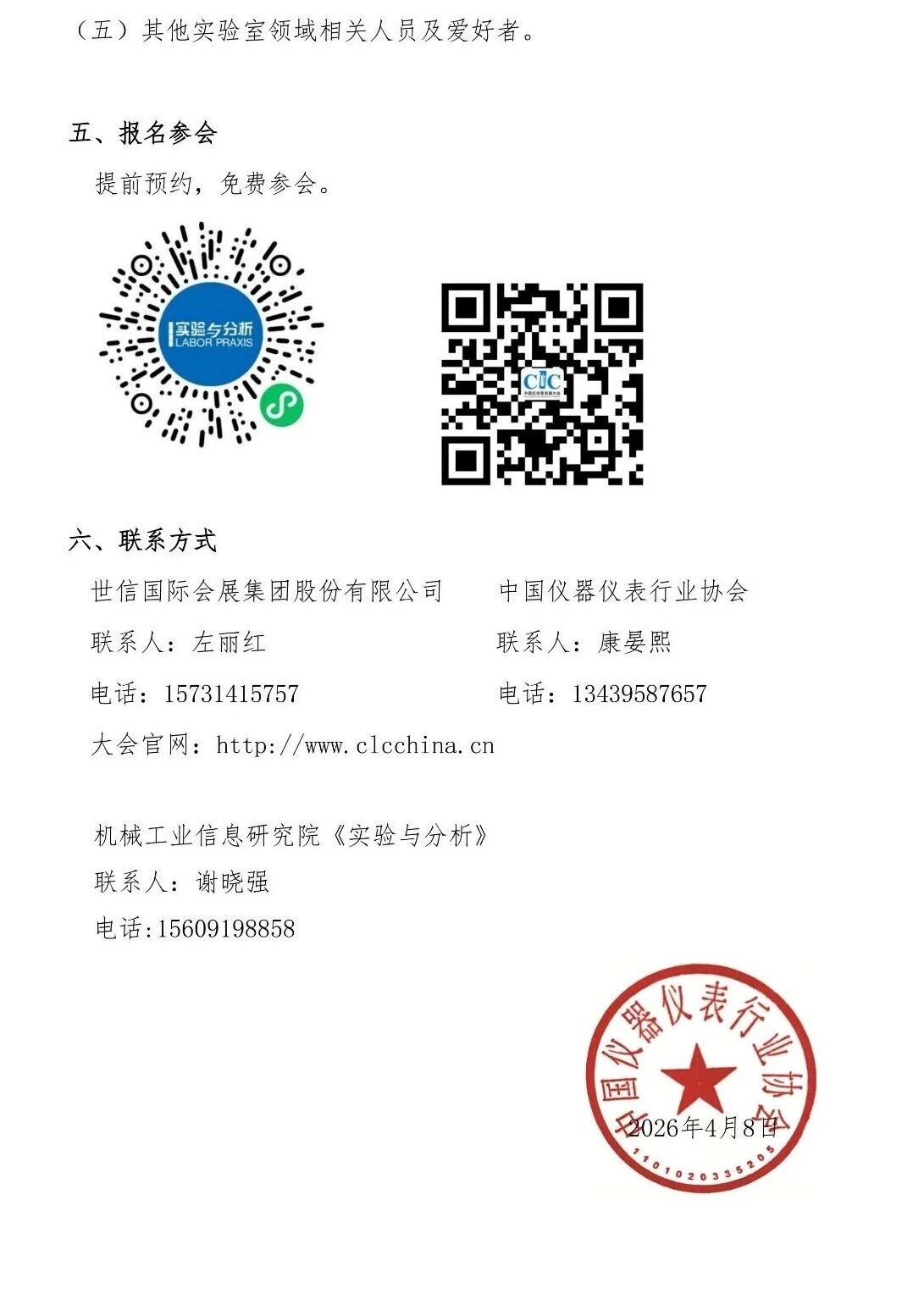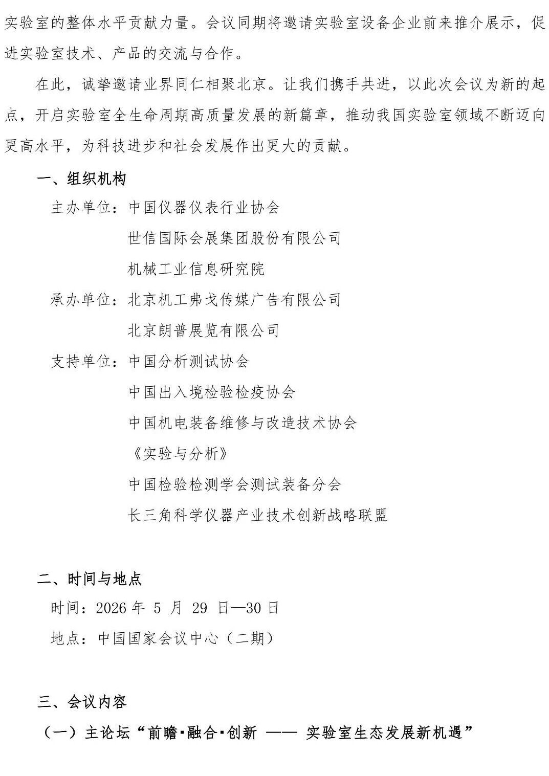 在當(dāng)今科技日新月異的時代背景下,實驗室作為科技創(chuàng)新的重要陣地,承載著推動知識進(jìn)步、技術(shù)突破的關(guān)鍵使命。從實驗室的規(guī)劃與建設(shè),到日常的運維管理,再到科研成果的產(chǎn)出與轉(zhuǎn)化,每一個環(huán)節(jié)都關(guān)乎著實驗室的潛力能否充分發(fā)揮。由中國儀器儀表行業(yè)協(xié)會和世信國際會展集團(tuán)股主辦的第七屆中國實驗室發(fā)展大會將于2026年5月29-30日在國家會議中心二期舉辦!誠摯邀請業(yè)界同仁相聚北京,共襄盛舉!