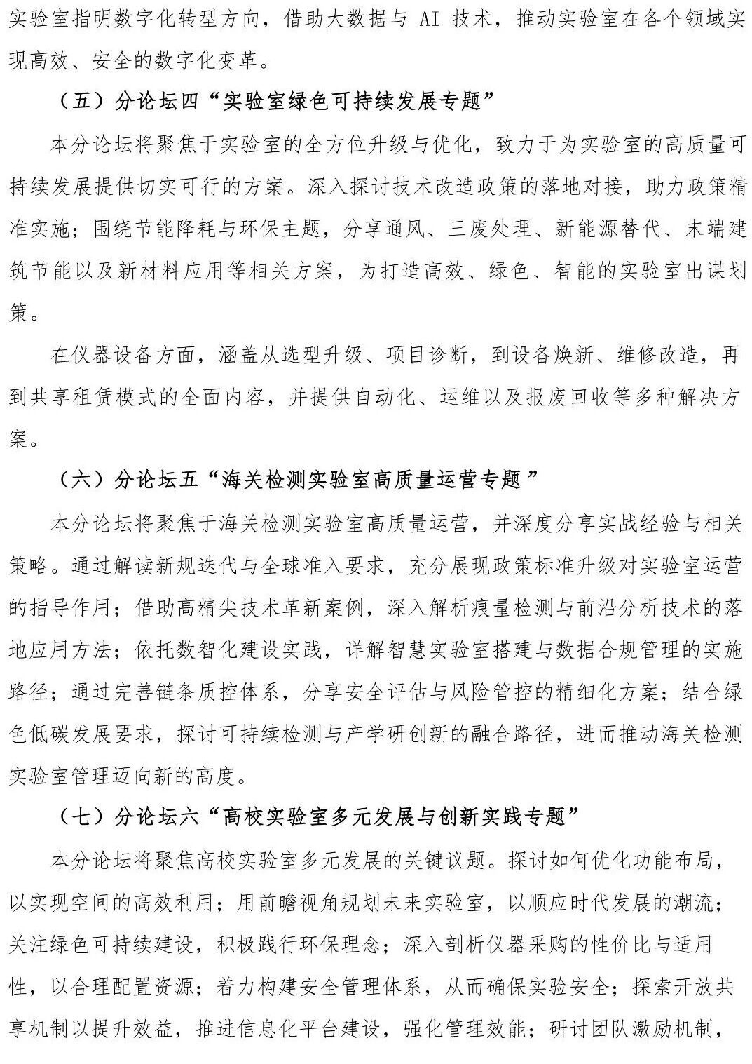 本次分論壇將聚焦最新法規(guī)解讀、實驗室安全體系建設(shè)、數(shù)智化管控技術(shù)、危化品全流程管理等核心議題開展深入研討。解讀危險化學(xué)品安全管理的法規(guī)標(biāo)準(zhǔn),并分享綜合管理實踐經(jīng)驗;重點關(guān)注化學(xué)類實驗室的建設(shè)與運行,強調(diào)危險化學(xué)品、“三廢 ” 管理以及環(huán)保處置。同時,關(guān)注特種設(shè)備、機械電氣、輻射、消防以及生物安全等多個領(lǐng)域,并探索安全應(yīng)急管理體系的構(gòu)建;探討檢驗檢測實驗室管理體系的構(gòu)建,并展示安全、環(huán)保、智能化裝備以及新技術(shù)的應(yīng)用,致力于為教科研醫(yī)單位的實驗室打造全方位、多層次的安全管理生態(tài)。